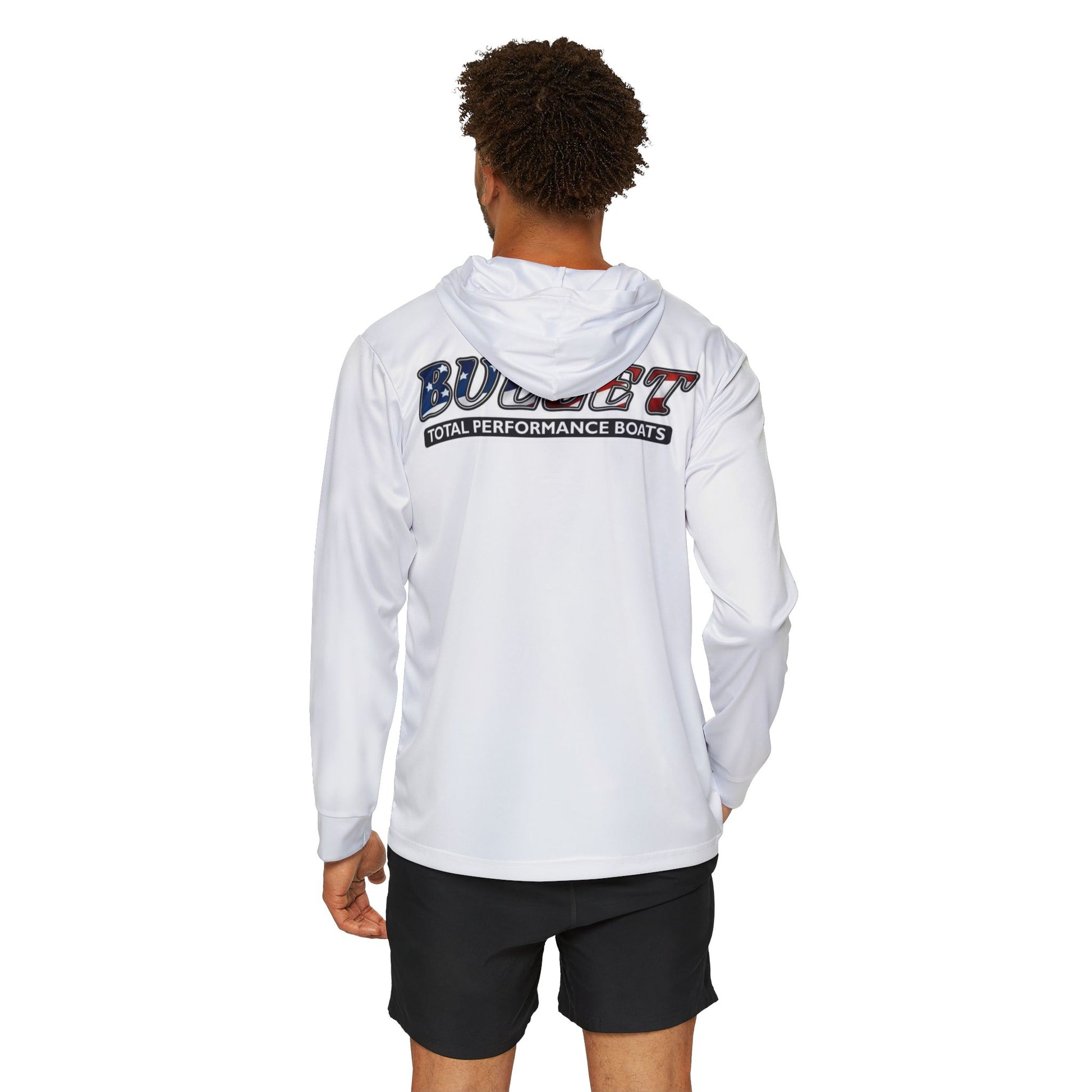 This Bullet Boats Fishing Hoodie is perfect for the outdoor enthusiast who loves fishing. Made of 100% moisture-wicking polyester, this hoodie keeps you cool and dry during any physical activity. With UPF +50 sun protection, it's ideal for sunny fishing trips. The white or black seam thread is automatically matched to the design, and the printed size and care label are conveniently located inside the front hood seam. Assembled in the USA from globally sourced parts.